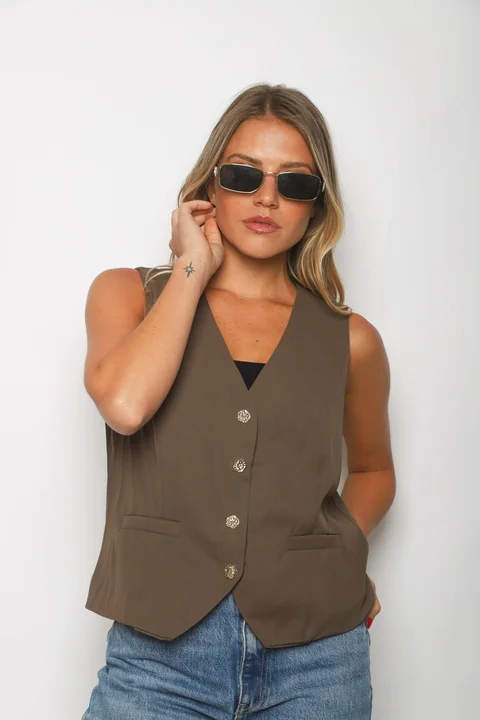 Chaleco Premium Sastrero Forrado con detalle Botones con Brillos.