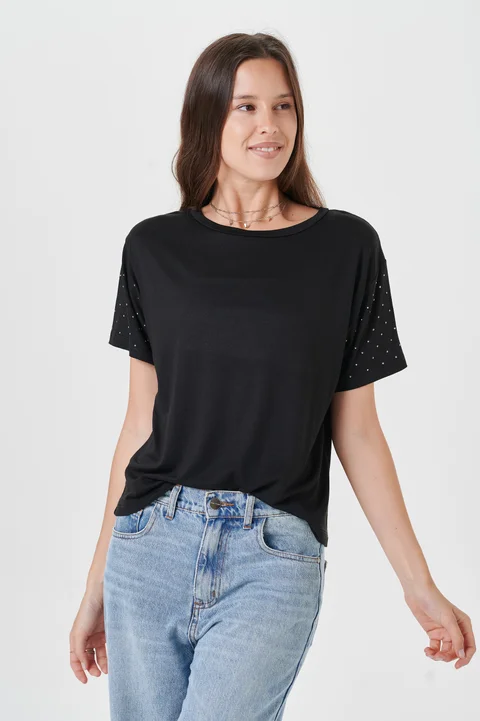 Remera Muaa Black Creppe Manga con Tachas