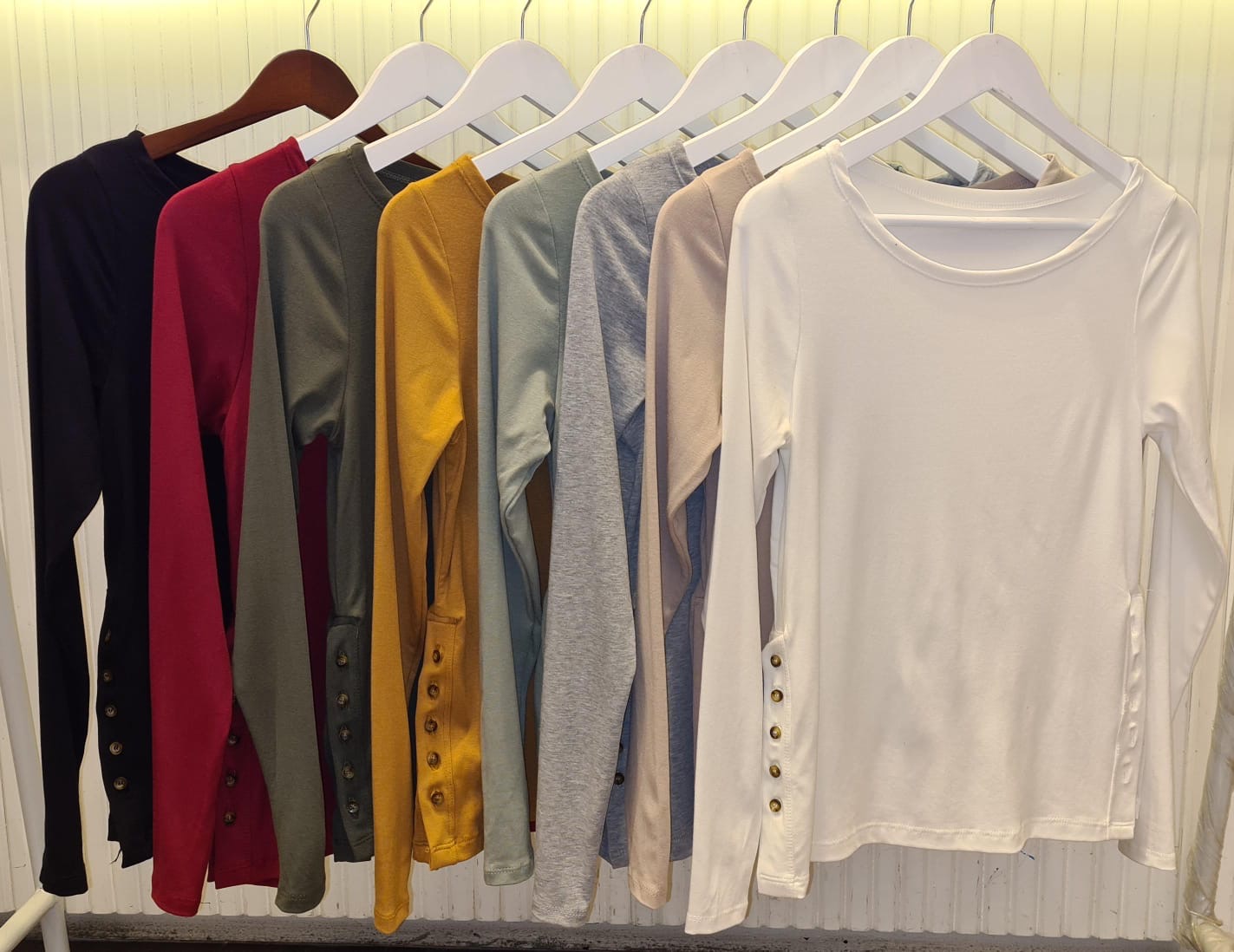 Remera Manga Larga de rib 1x1 con lycra super elastizado con detalle botones laterales. Medidas Aproximadas: Talle Unico Sisa 47 cm Largo 60 cm.